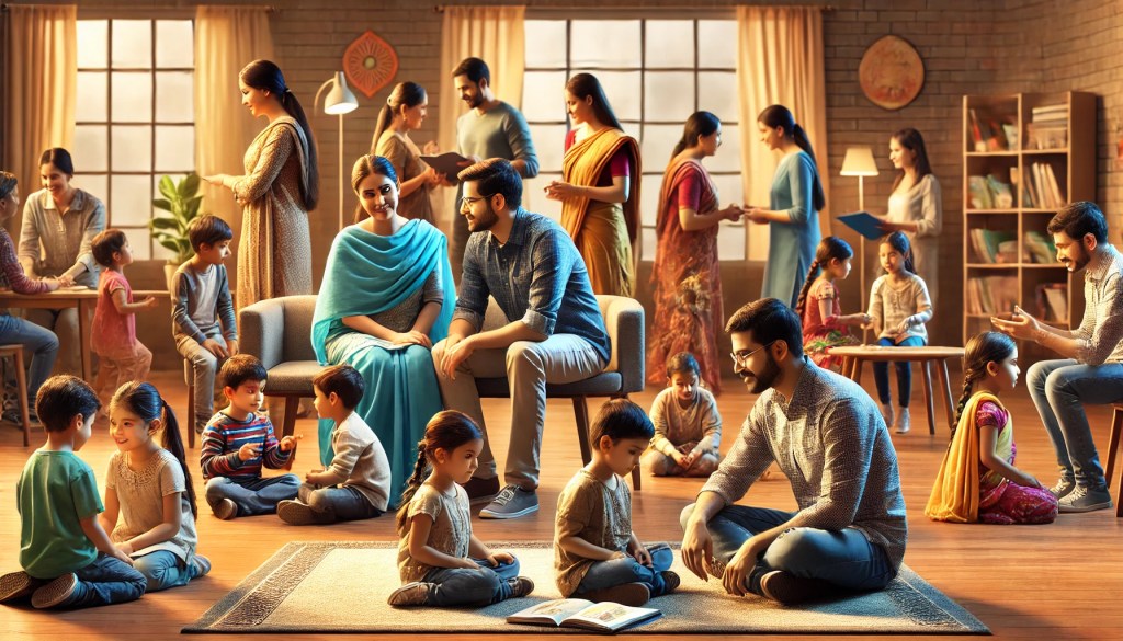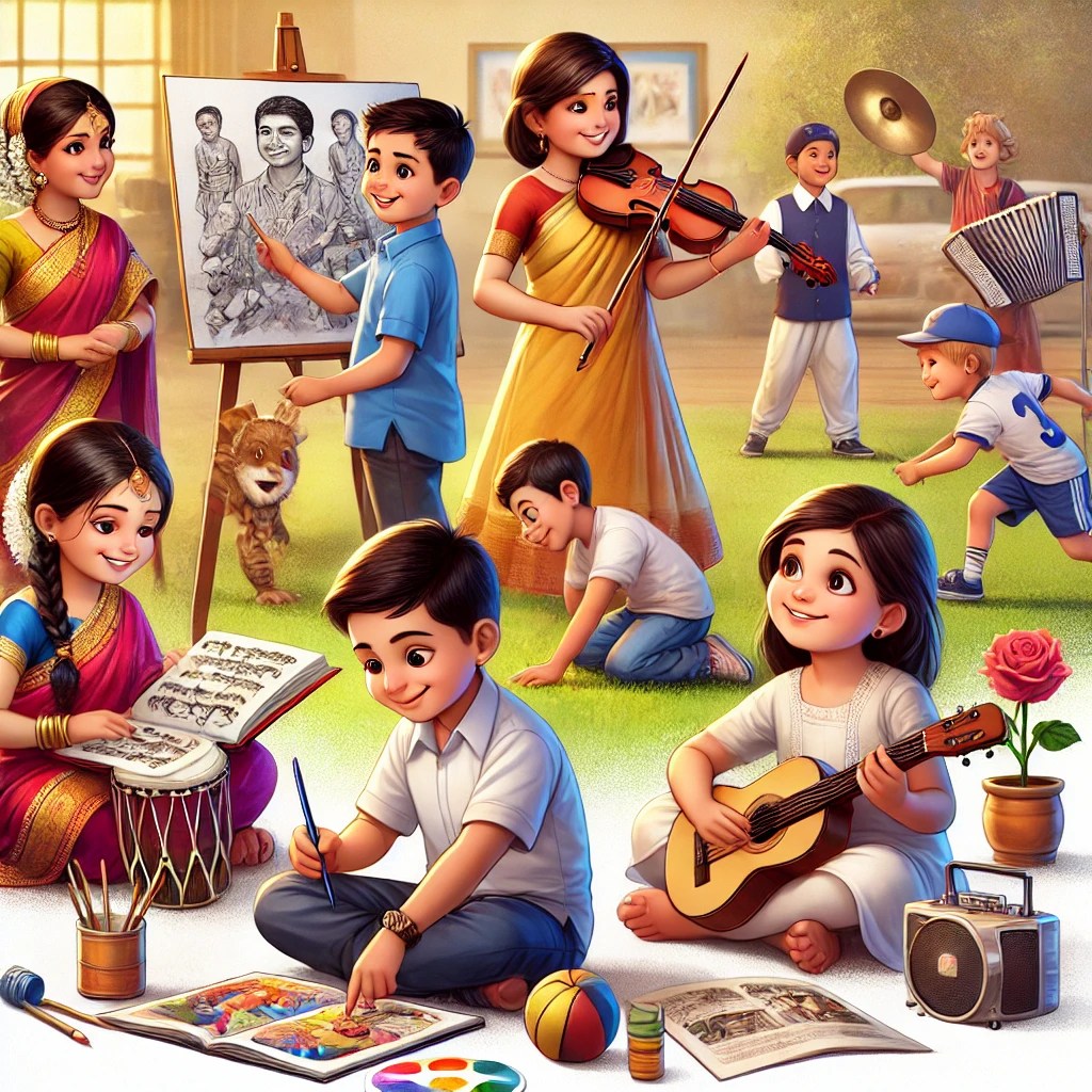 – **Playing Instruments:** Use simple instruments like tabla, harmonium, or cymbals.
