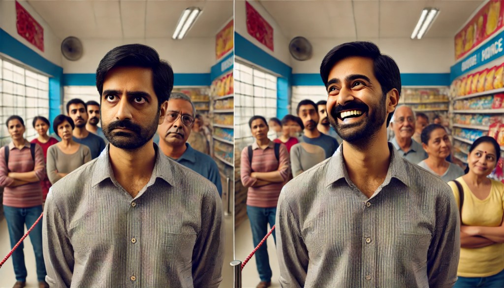 உதாரணம்: நீண்ட வரிசையில் இருப்பின், நிலையை மிதமாக்க ஒரு லைட்டான நகைச்சுவையை செய்யுங்கள்.