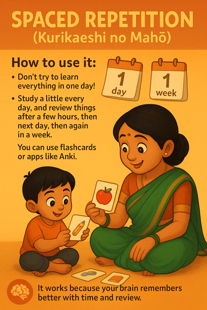 🔁 Bonus: Spaced Repetition — “Kurikaeshi no Mahō” (पुनरावृत्तीची जादू)