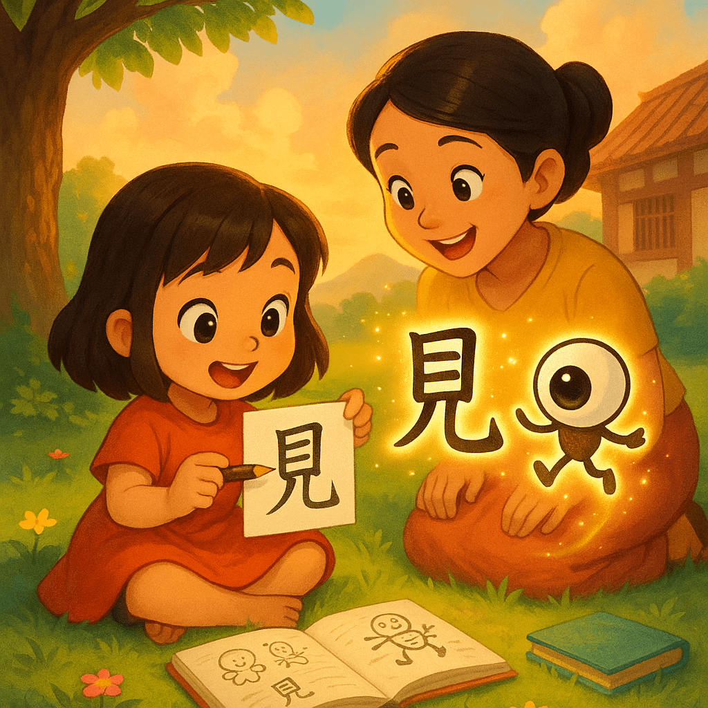 जपानी Kanji अक्षरं अवघड असली तरी विद्यार्थी त्यांना चित्रांद्वारे लक्षात ठेवतात. जसे 見 (mi = पाहणे) हे “डोळे आणि पाय असलेली आकृती” समजा.