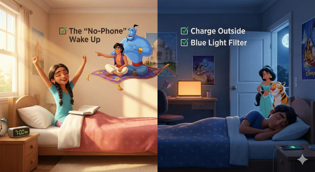 - [ ] Charge Outside the Bedroom: Keep your charger in the hallway or across the room. This prevents late-night doom-scrolling and makes you physically get out of bed to turn off your alarm.