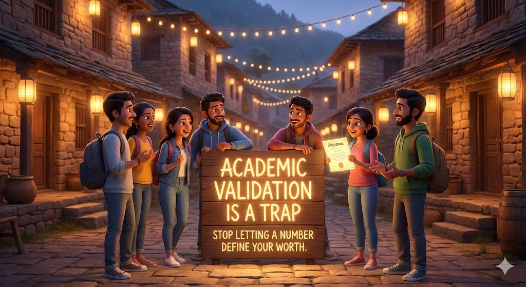 We have been conditioned since kindergarten to believe that Good Grades = Good Person. We chase that high, pulling all-nighters, running on iced coffee and anxiety, terrified of the inevitable crash that comes with a B-minus.