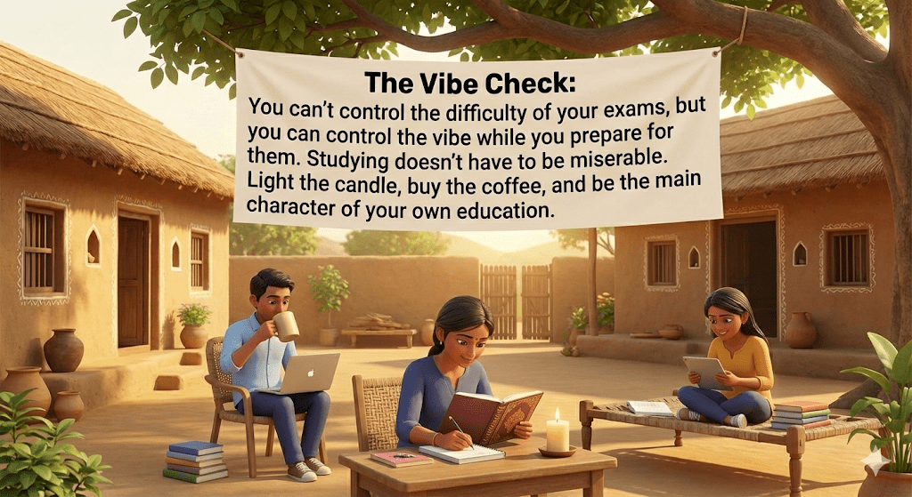 The Vibe Check: You can’t control the difficulty of your exams, but you can control the vibe while you prepare for them. Studying doesn’t have to be miserable. Light the candle, buy the coffee, and be the main character of your own education.