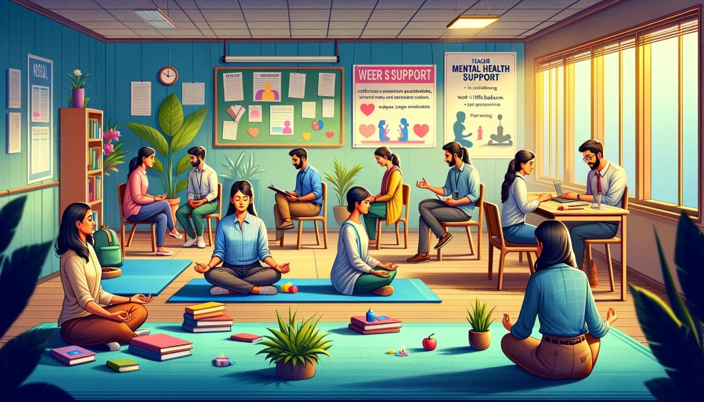 - Discussing the importance of self-care and mental health support for Indian teachers, considering the high levels of stress and burnout prevalent in the profession.